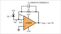 광범위한 포토다이오드용 트랜스임피던스 증폭기는 까다로운 조건을 요...